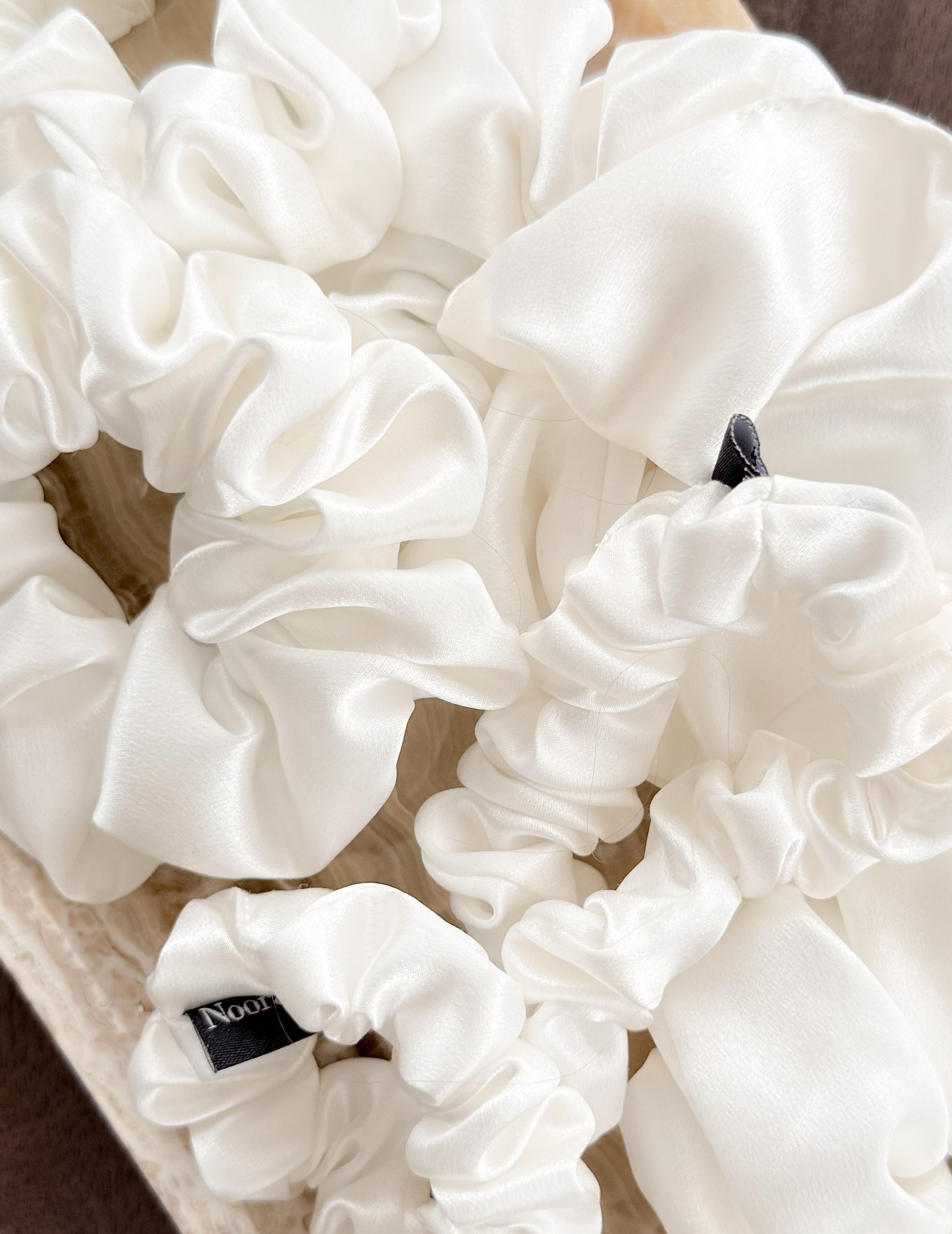 The Silk Scrunchies Blend Set includes three silk scrunchies in petite, midi, and grande, offering versatile styling for every hair type and occasion. Crafted from smooth silk and designed with spiral elastics for a secure yet gentle hold, they glide effortlessly over the hair to reduce friction, minimise creases, and help prevent breakage. The different sizes allow for flexible styling, from subtle, lightweight holds to fuller support for thicker, curly, or coily hair.