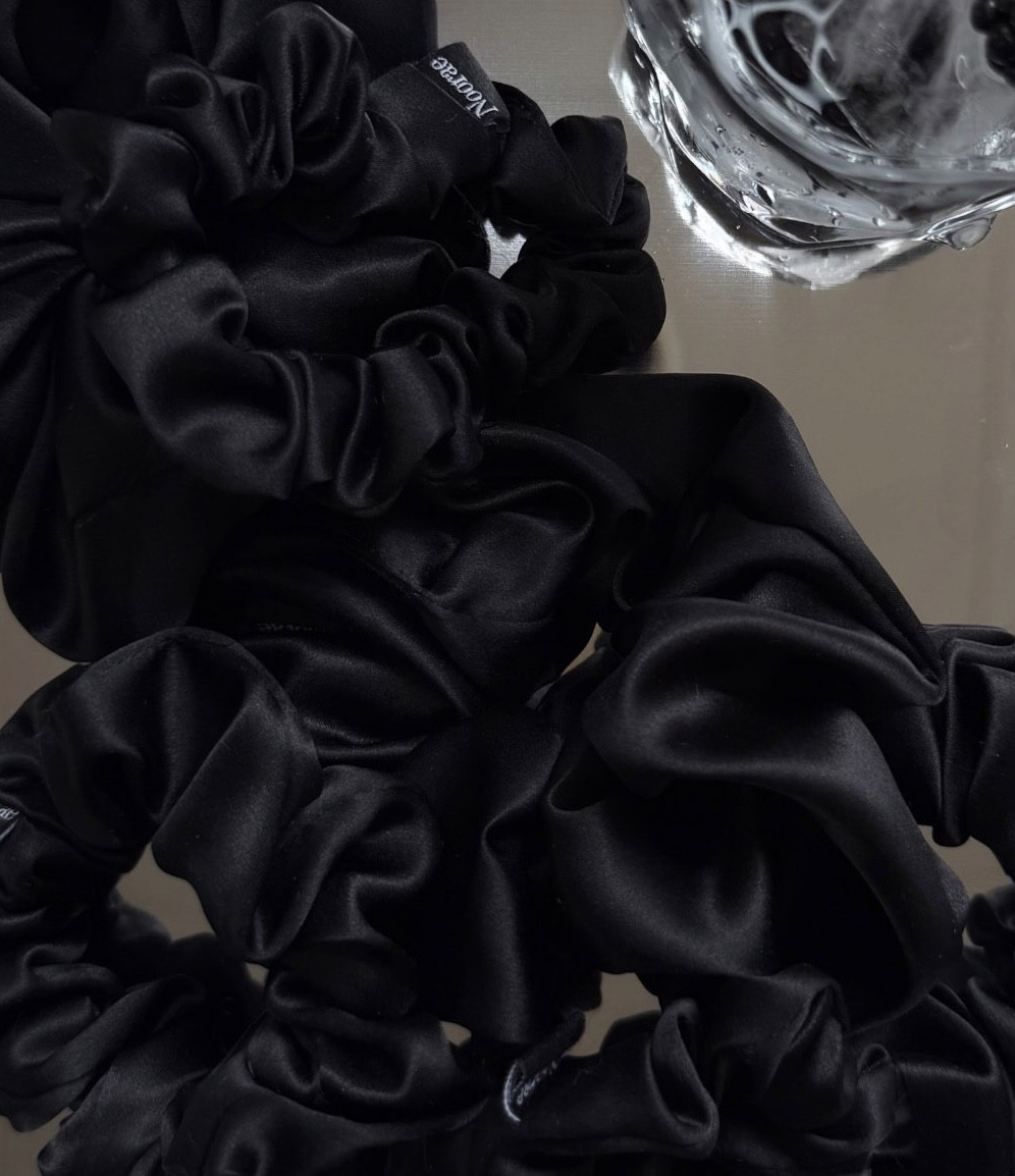 Maximum hold, minimal damage. Designed for volume and strength, this set of oversized silk scrunchies offers a secure hold while remaining gentle on your hair. The spiral interior ensures grip, while the silk exterior helps reduce friction and frizz.